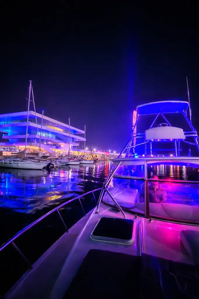 Vive una tranquila navegación nocturna y disfruta de las mejores vistas nocturnas de Valencia.